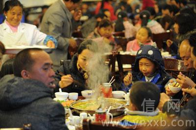 室外雪下得正“High”,火鍋店里卻熱火朝天。華昌路上重慶老火鍋店的楊老板中午特意叫伙計(jì)加夠了客人愛(ài)點(diǎn)的豌豆尖、大白菜等。“比昨天多買(mǎi)了一倍。”楊老板說(shuō),近段時(shí)間每天的菜金也就300元左右,昨天他把菜金提高了一倍,還不到6點(diǎn)半,店里所有的桌子全部坐滿(mǎn)。