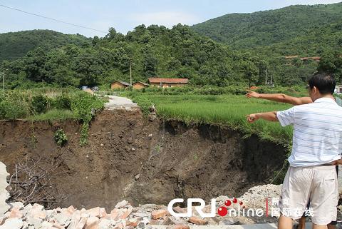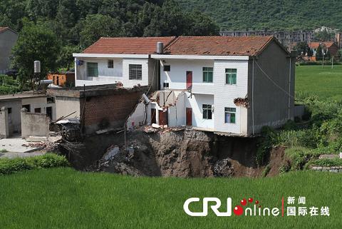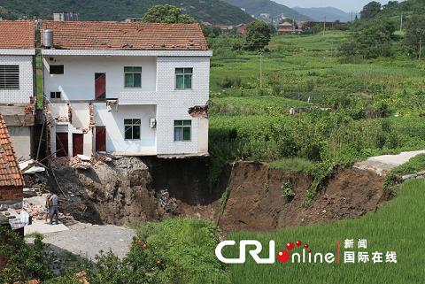 附近居民一角已經陷入“天坑”