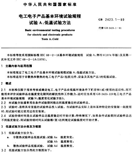 GB2423.2-89電子電工試驗規程低溫試驗方法:http://www.youkade.com/uploadFile/softdown/2008103142514037.pdf
