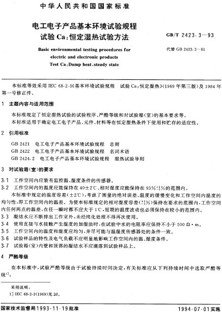 GB/T 2423.3-93電式電子產(chǎn)品恒定濕熱試驗方法