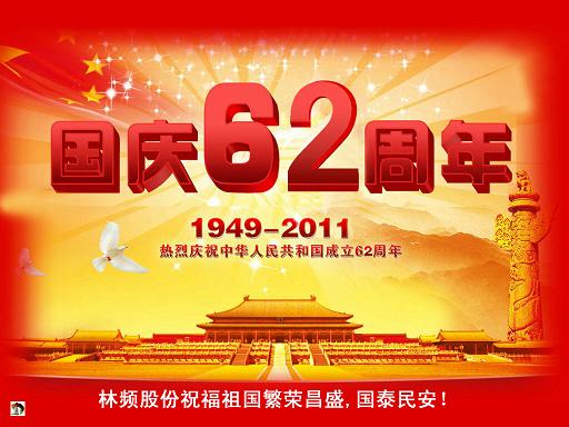 2011年10月1日,中華兒女迎來了祖國母親62華誕。上海林頻儀器股份有限公司以中華兒女之姿,唱響豪邁激情的歌聲,放飛金色的理想,放飛堅如磐石的信念。共同祝福我們親愛的祖國:國泰民安,繁榮昌盛!