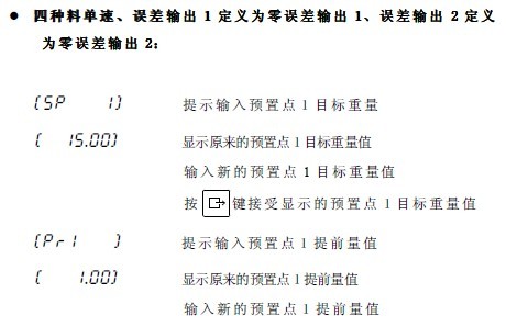 兩種料雙速、誤差輸出1 定義為預置點允差輸出1、誤差輸出2定義為預置點允差輸出2: